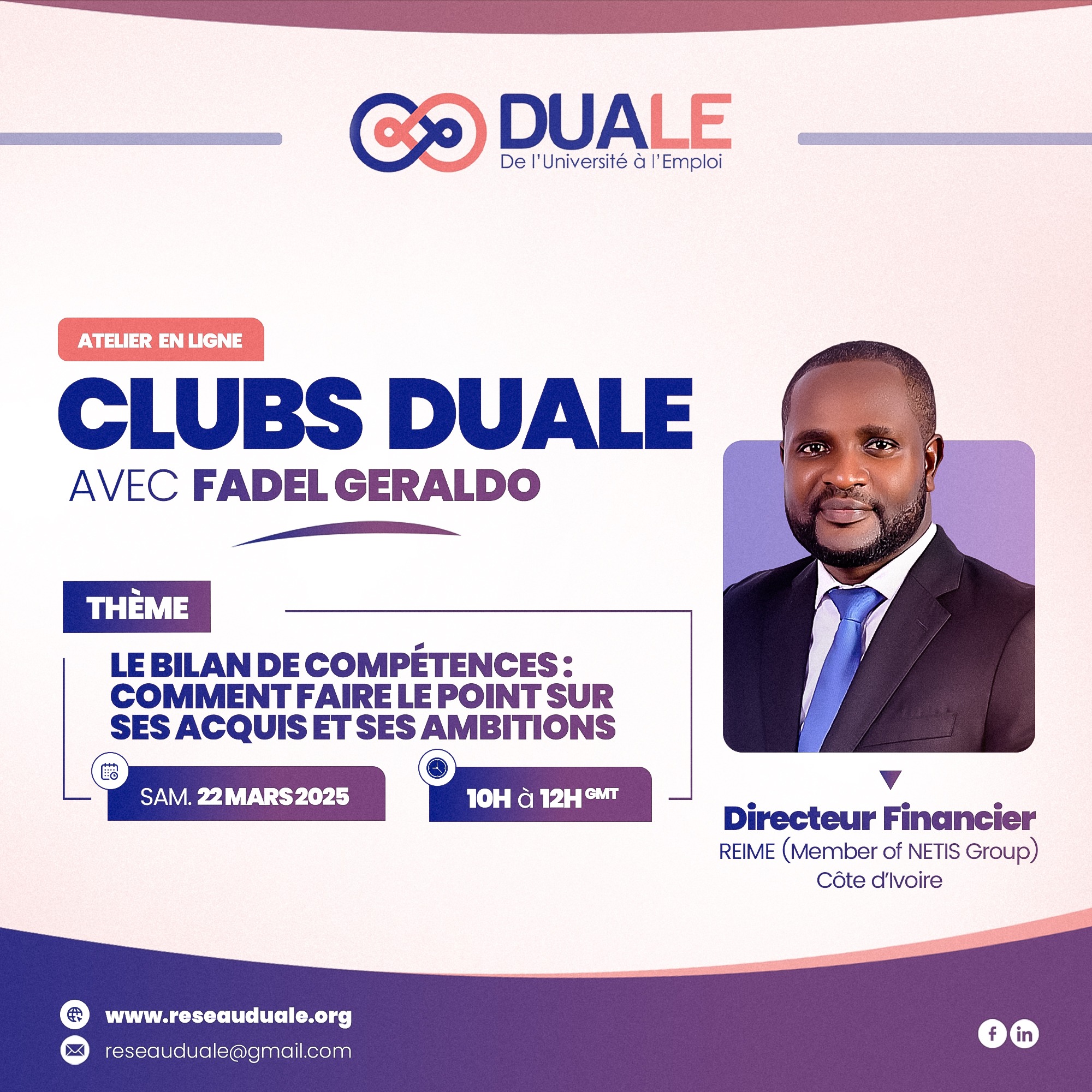 Formation des participants du parcours DUALE avec Fadel GERALDO DUALE 26/02/2025 🌍 Qui est Fadel GERALDO, Directeur Financier - REIME (Member of NETIS Group) Côte d'Ivoire ?